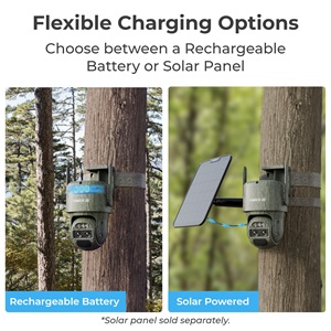 - De G770-C heeft een langdurig werkende, oplaadbare batterij maar werkt ook met een Reolink zonnepaneel (niet inbegrepen), voor continue stroom;