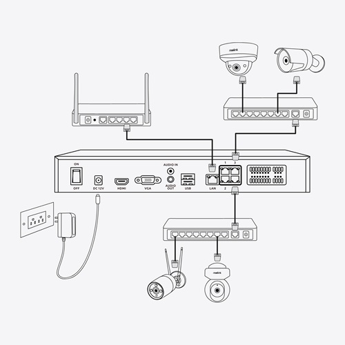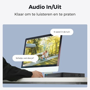 - Tweeweg audio via NVR. Ingebouwde audiopoorten maken het mogelijk om een tweeweggesprek te voeren via de NVR. Reageer direct op verdachte personen of praat live met personen ter plekke (werkt alleen in combinatie met Reolink camera's die een ingebouwde microfoon & speaker hebben). Een verbeterde bewakingservaring!
