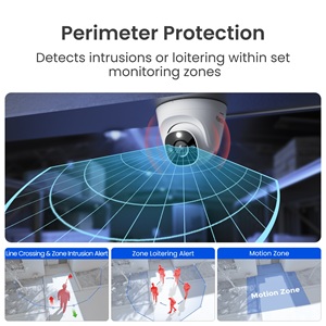 - Perimeterbeveiliging: Ontvang AI-gestuurde waarschuwingen voor lijnoverschrijding, inbraak in een zone of rondhangende figuren in een zone. Nauwkeurige bescherming van kritieke gebieden;